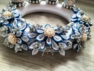 Piękny, ręcznie wykonany wieniec adwentowy w kolorach niebieskim i białym. Ozdobiony jest kwiatami z kryształków i ...