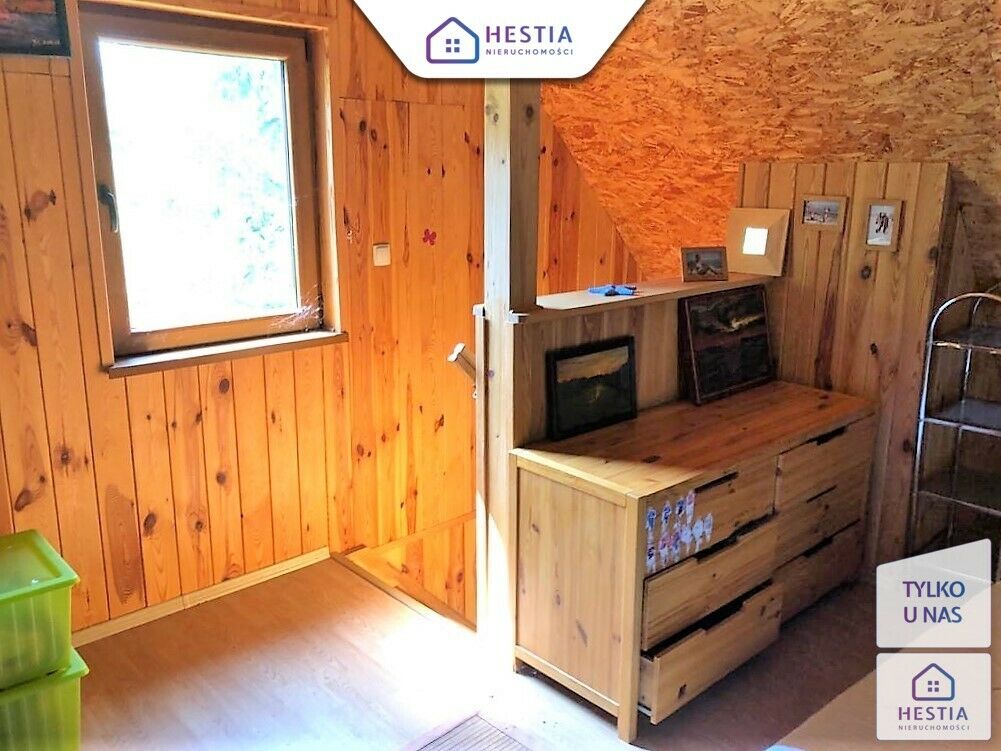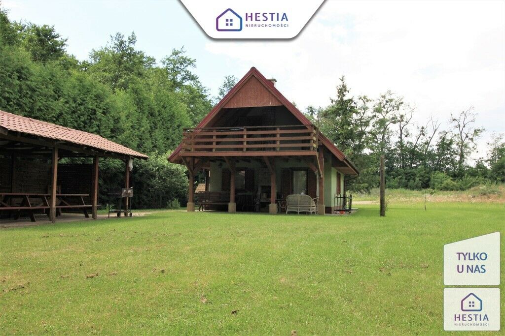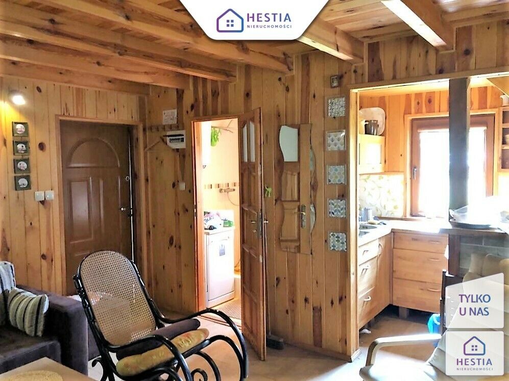 Na działce znajduje się całoroczny domek letniskowy o podstawie 35